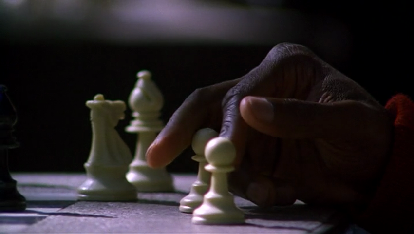 Next, take a look at the opening of Searching for Bobby Fischer. We see young Josh hiding in the bushes, watching people play chess in the park. But he’s not just observing—he’s completely fixated. The filmmakers use long lenses to magnify the small details he’s focused on, details far beyond what we’d normally notice from a distance. There’s no wide shot to show where he is, or how far away—just a sense of intense interest and focused attention.